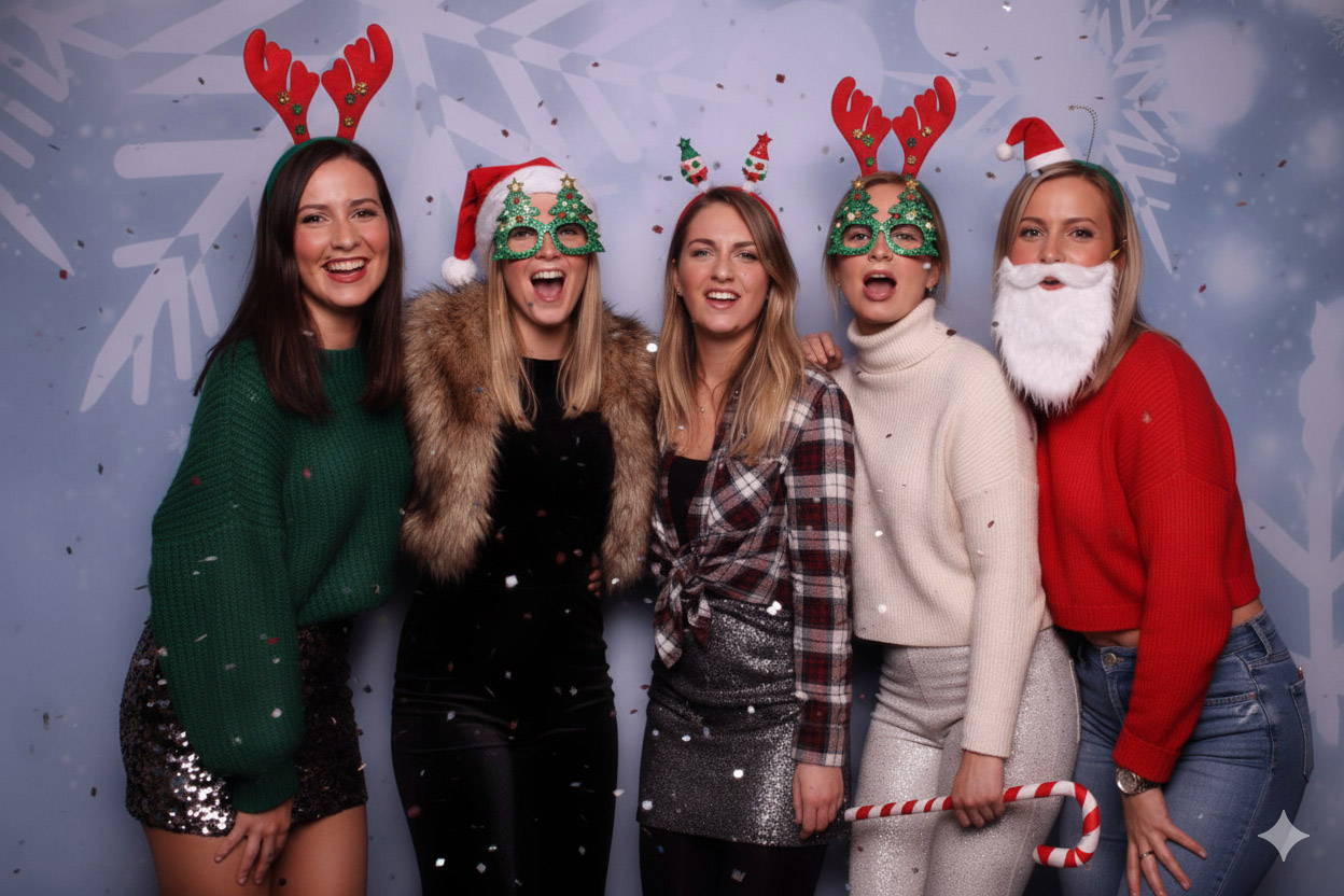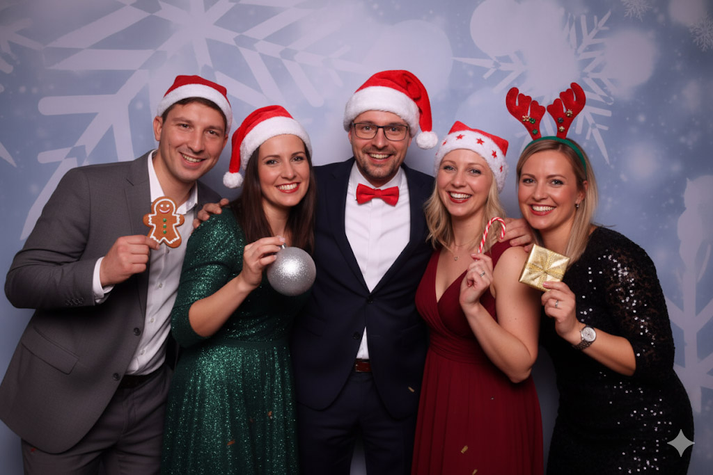 Von Weihnachtsmannmützen bis Schildern – sorgt für gemeinsame Späße und unvergessliche Gruppenfotos.